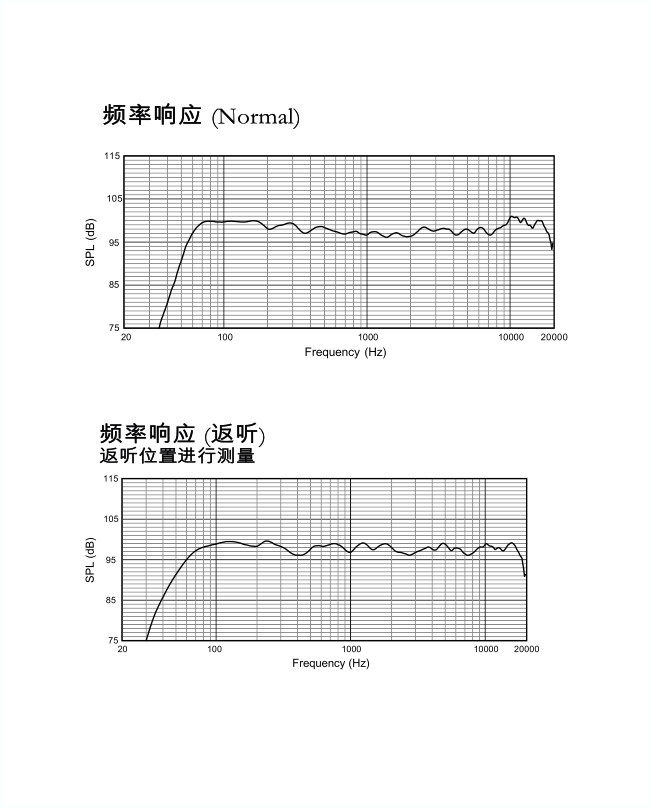 频响范围(10dB):主扩:50-20kHz 返听:46-20kHz 频率响应(±3dB):主扩:56-20kHz 返听:56-19kHz