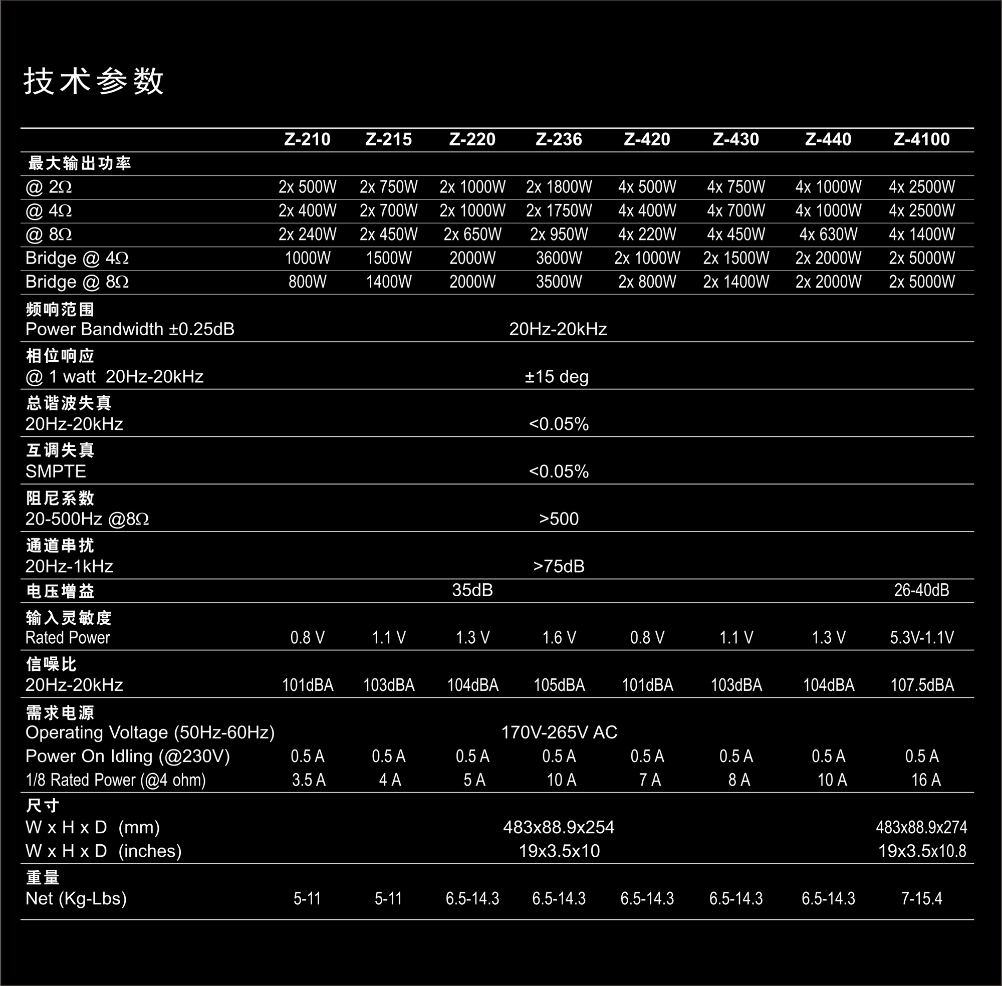 · 从1000W到4000W的2/4频道型号