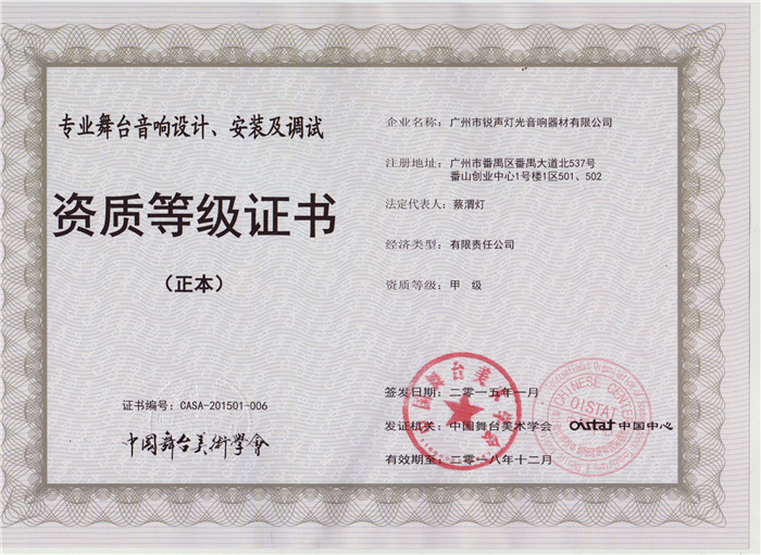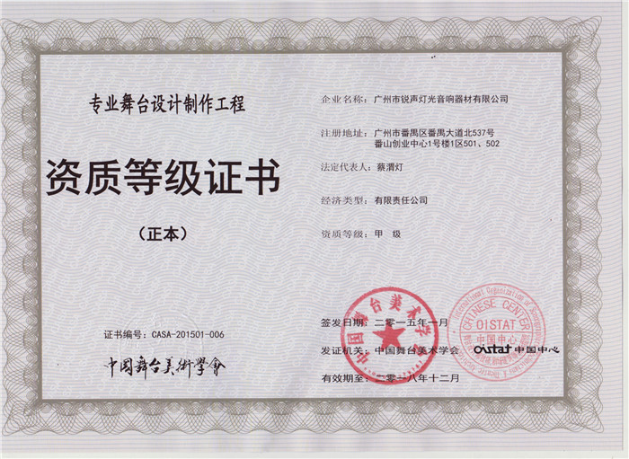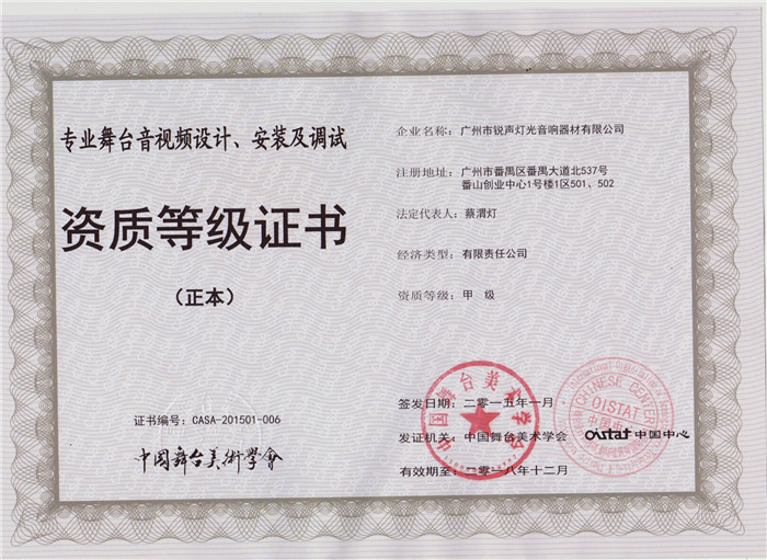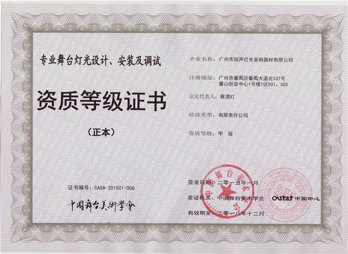 专业灯光工程综合技术能力壹级