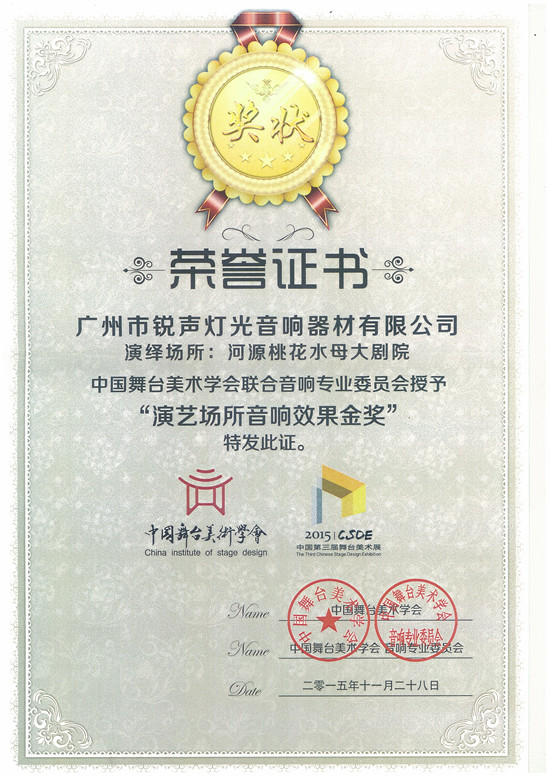 演艺场所音响效果金奖