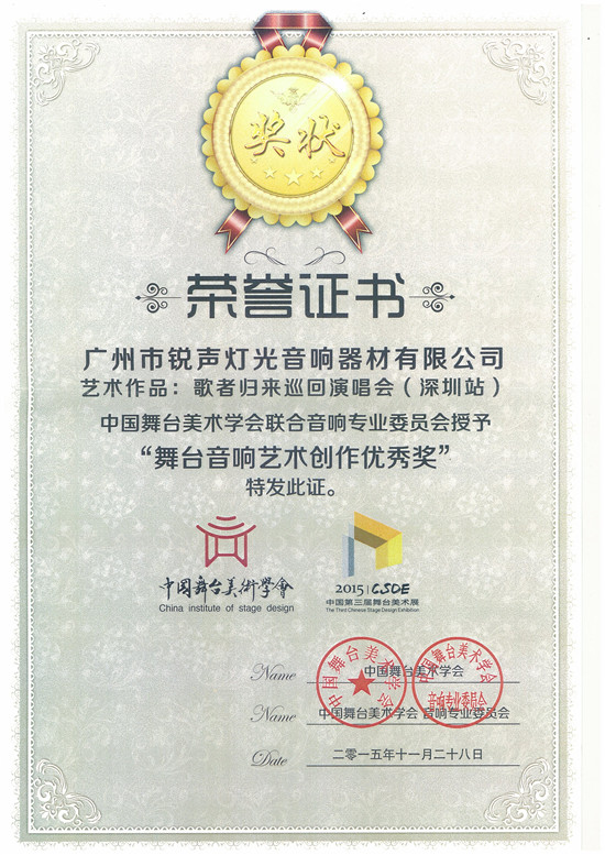 舞台音响艺术创作优秀奖