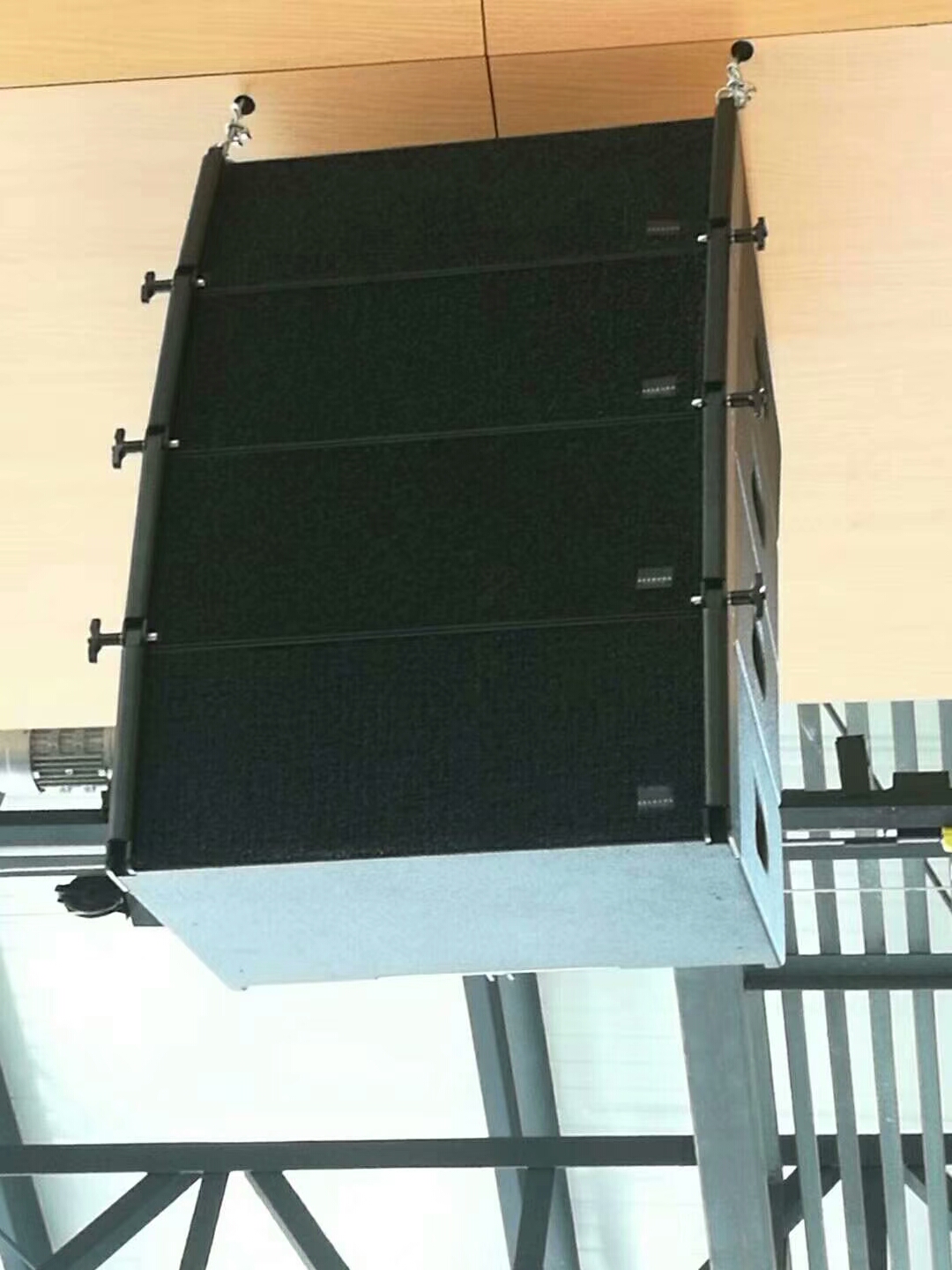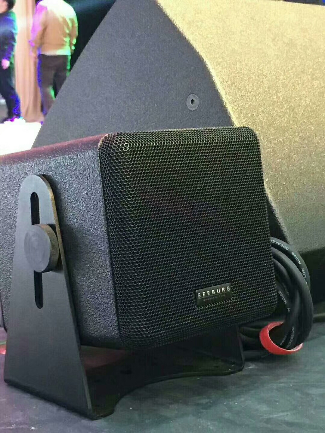 现场主扩由8只(SAL)GALEO 120线性阵列音箱组成,分别以4只为一组吊挂在舞台上的左右两边。4只K sub 1801超低频音箱作场内低频。2只A8 多功能全频箱作场内辅助扩声音箱分别吊挂在观众区域的左右两边墙体上。4只A6多功能全频音箱均匀放置在舞台前,指向舞台内作台上的监听返送音箱,A6具有很好的线性声音处理效果,除了适用于舞台监听音箱以外,还适用于高品质的全频音乐还原系统。其可转动的1″圆形DPC高音号角使该音箱保持90°×60°的传播角度。4只小巧紧凑的同轴音箱I5置于台口作台唇补声音箱,可以作为大型系统的补声,拥有良好的音质和高效的性能。
