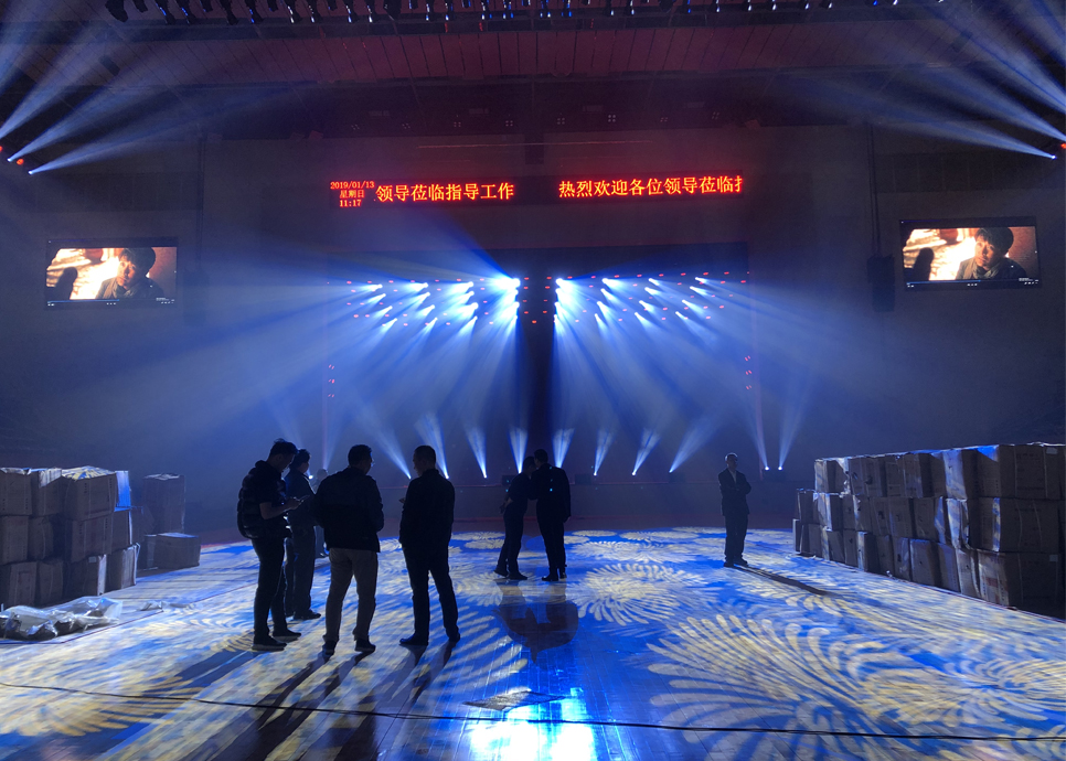 其中体育馆应用了近380支灯具。其中均匀分布在体育馆内应用了77支440W三合一摇头电脑灯DREAM440BSW,6支1400W图案切割电脑灯DLW1400LITE-P,2支DLW 1400 FOLLOW追光灯。