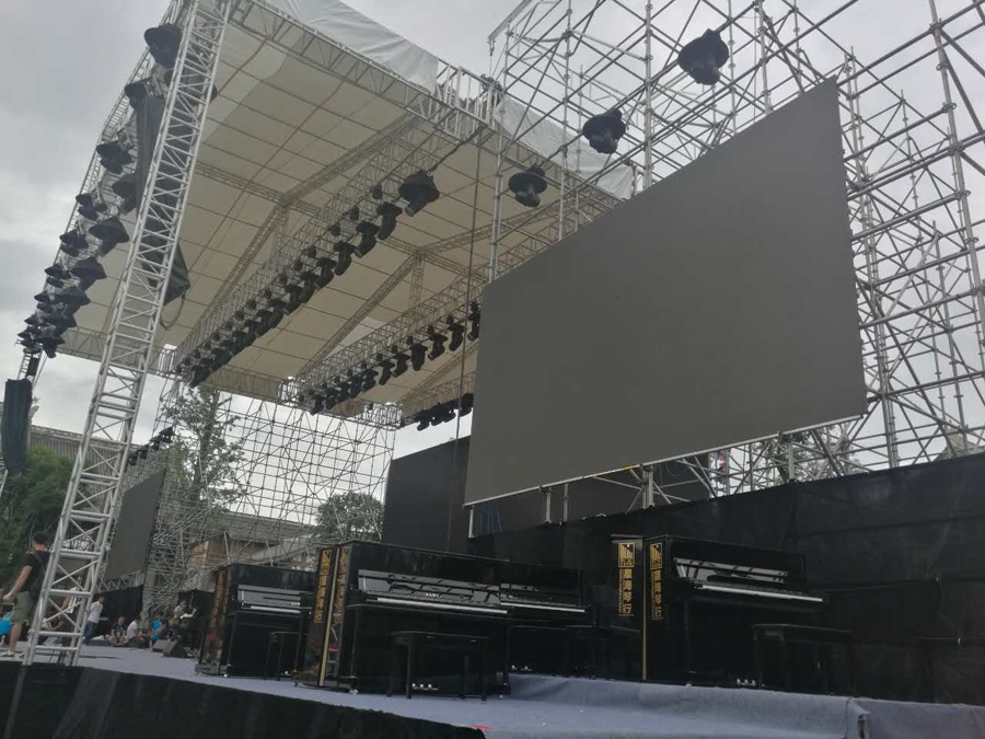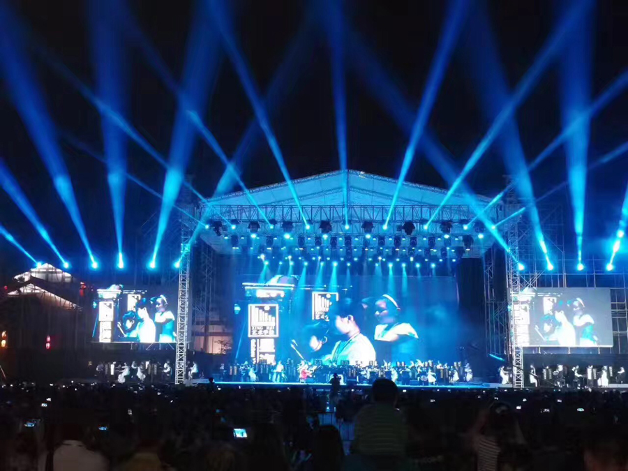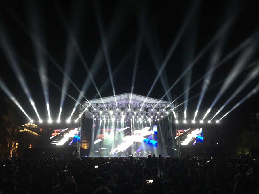 本次音乐会的音响工程采用了德国Vera10垂直线性阵列扬声器系统,整个系统用了4串共24只Vera10线阵列扬声器,8只L24中低频扬声器,4只BSX超低来加强低音,你可以想象这套五分频系统能带来你所期待的演出效果;另外还使用了8只S30超低,S30的重量与其输出能力的比率令它当之无愧地成为VERA10系统的标准低频扩展音箱;以及使用了4只T24点声源阵列扬声器,12只M12音箱,配套K3DSP数字功放一批。