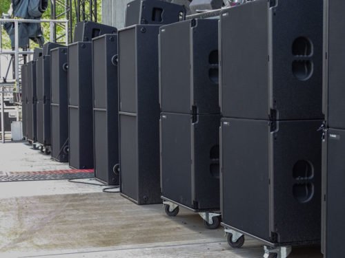 为了满足现场上万人的狂欢,主办方采用了每侧12个VERA36左右悬挂,每侧2个S33超低在线阵上方,添加了一些低频的扩展,对于地面堆叠的配置,我们有6个双21寸超低扬声器BSX,并且S33以心形格式设置,其中两个前置,一个后置。 从中心向外移动,然后我们间隔四个进行堆叠,每个堆叠使用两个S33。