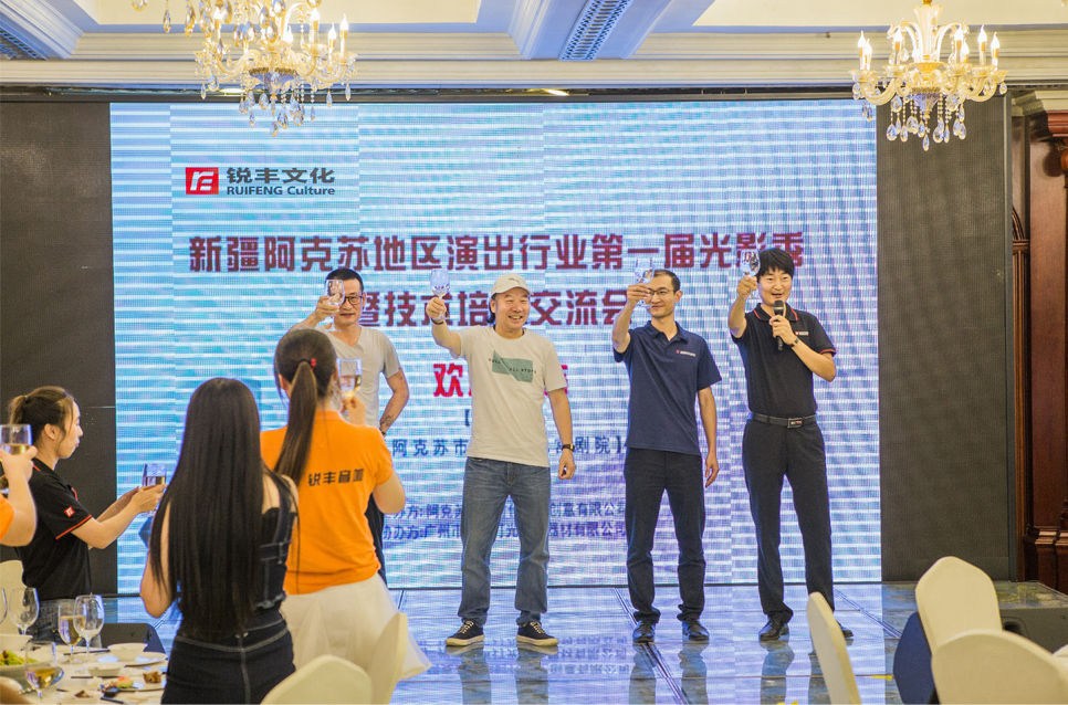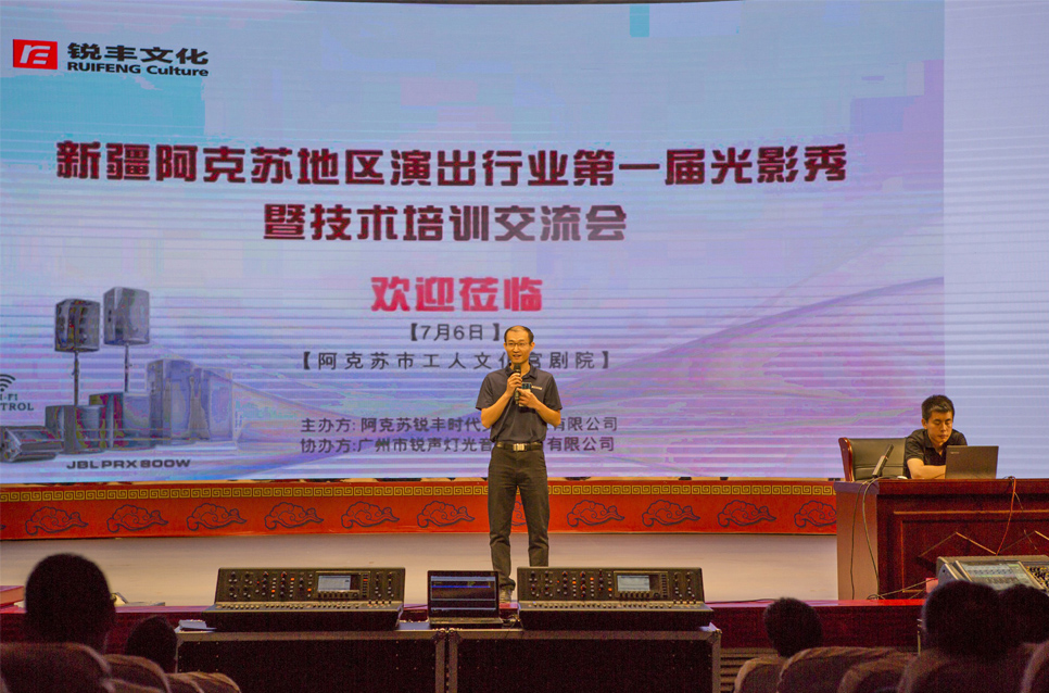 由阿克苏锐丰时代文化创意有限公司主办 ,广州市锐声灯光音响器材有限公司协办的“新疆阿克苏地区演出行业第一届光影秀暨技术培训交流会,已于2019 年7月6日、7日两天在阿克苏市工人文化宫剧院圆满落幕。