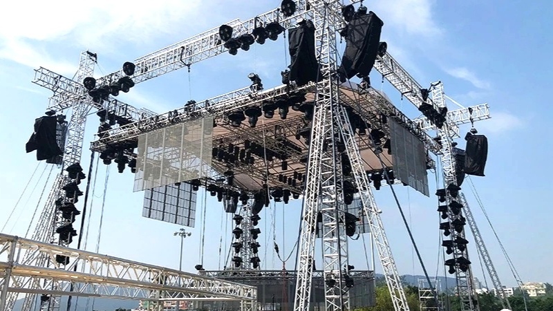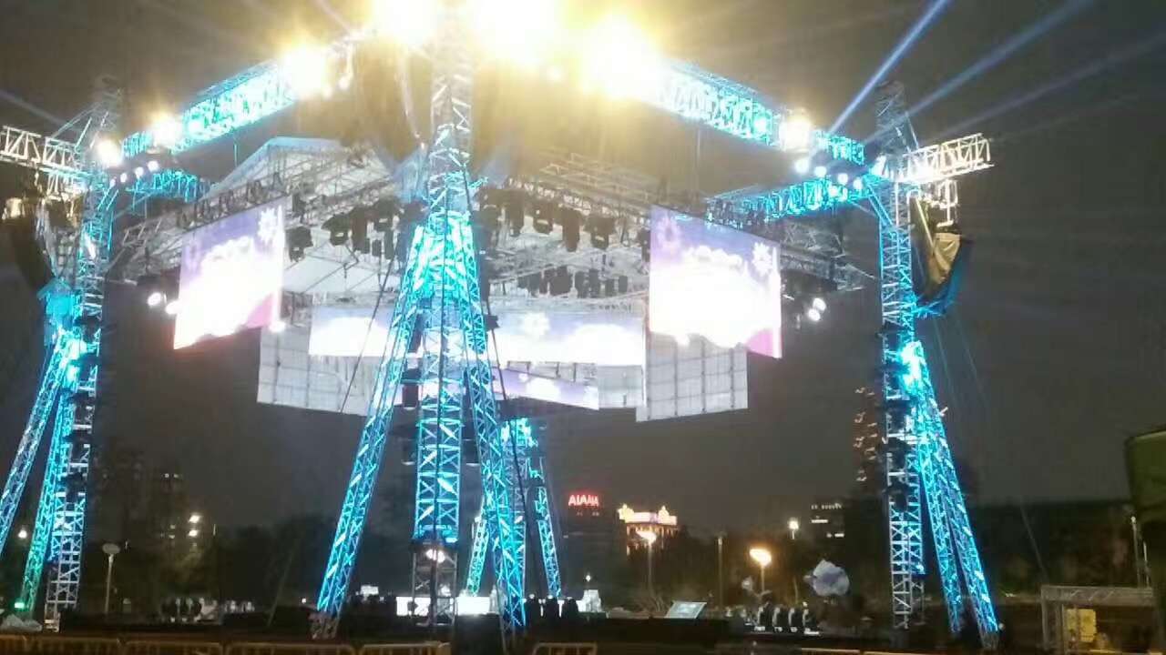 为了让观众能全方位观赏演出,今年澳门观光塔倒数晚会继续采用全方位四面舞台设计,将热情震撼的气氛带给观众。其中在舞台四面吊挂了8串共56只Vera36垂直线阵列扬声器作为主扩,超低频则使用24只S33心型指向性超低扬声器和4只BSX双21寸超低扬声器,舞台监听和前补共使用了20只M15/M12音箱,整个系统使用的是K3DSP零延迟的双通道D类数字功率放大器来驱动。