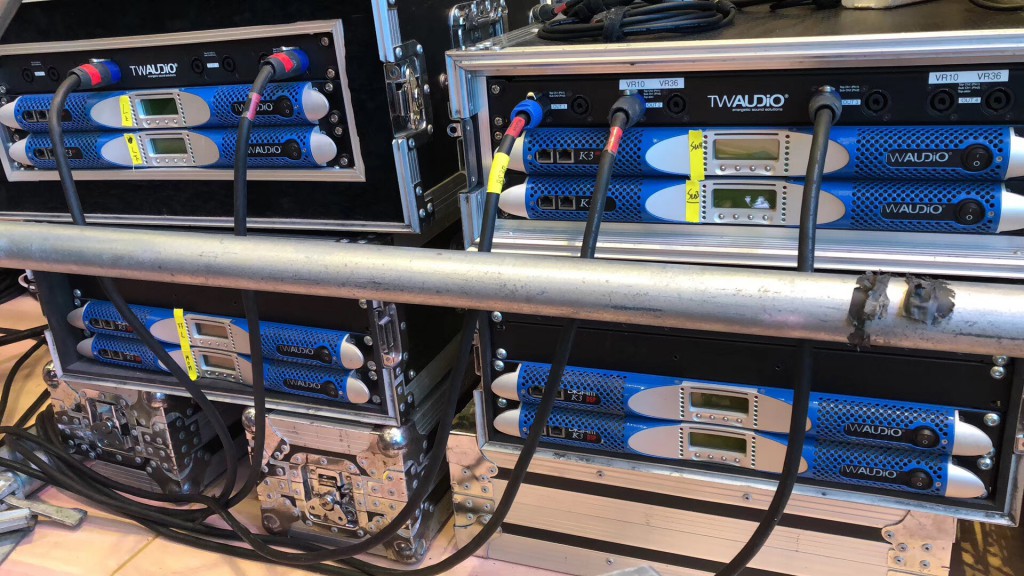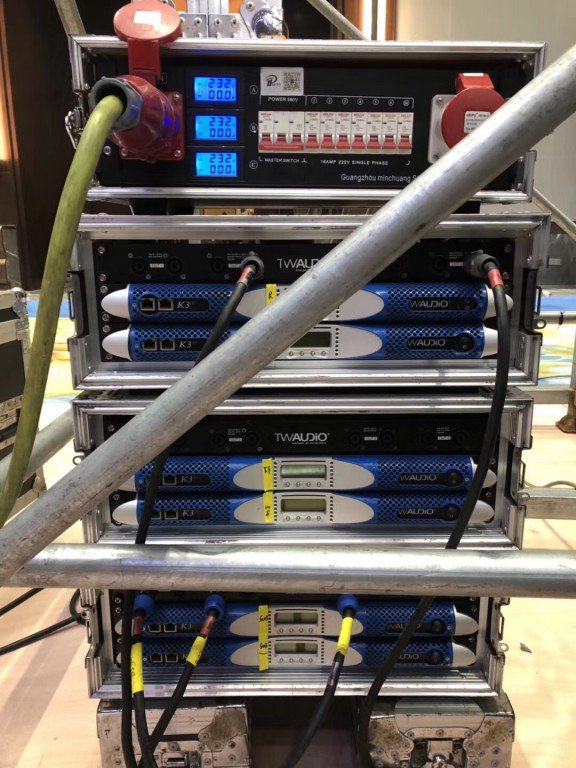 全场28只TW AUDiO VERA10线性阵列扬声器搭配12只B30超低音扬声器作现场主扩扬声器,适用于大型体育场馆、流动演出 、剧院、俱乐部等。专业的音效设计,让整场发布会气氛更为热烈,高品质音效与盛典完美结合。整套扩声系统应用了16台K3DSP数字功放驱动。