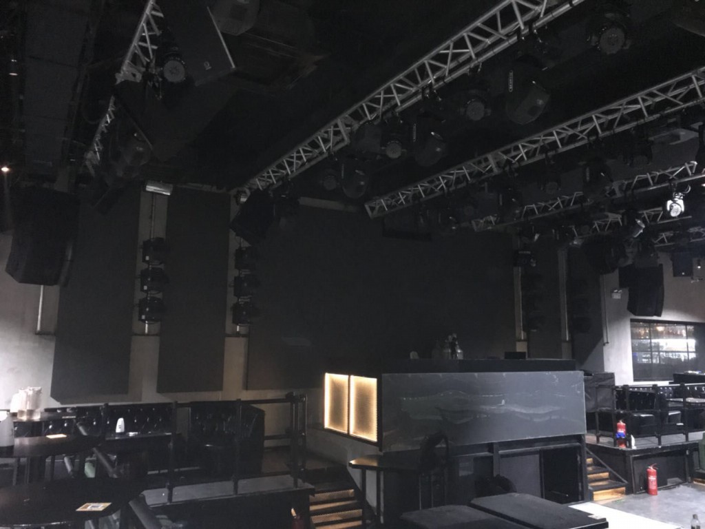 酒吧,对现场的音响效果要求尤为注重,需要音箱提供大范围的频率响应,使音乐的各个频段都得到有效、真实地还原。让宾客的心情都能够得到全面释放而沒有一点拘束。现场的声音效果达到了很好的丰满度、很好的声场定位,让你在犹攘喧嚣的城市中享受轻松、舒适与典雅。经过对UONE酒吧现场环境的多方面因素考虑以及多种音响品牌的对比,最终选定了由广州锐声代理品牌英国Turbosound(特宝声)线性阵列扬声器系统。