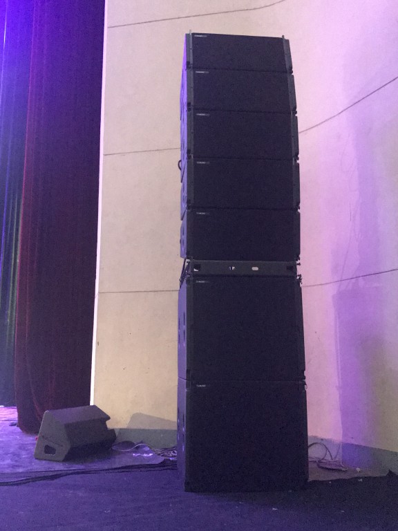 6月2日、3日由中国杂技团倾情上映的两场杂技演出共同使用的扩声系统是德国TWAUDiO VERA36垂直线阵列系统为了满足能够容纳1500多人的南宁剧场的这两场演出,经过锐声技术工程师对剧场的实地勘察及声场计算,最终决定在舞台上堆叠放置了左右各2只S33心形指向超低音搭配5只VERA36双10寸垂直线阵列音箱。其中3只VERA3覆盖第一层,剩余2只投射到第二层。从演出当晚出来的声音效果来看,TWAUDiO不负众望,即使在高度将近8米的二楼看台区域,TWAUDiO的声压级依然强劲。除此外,舞台上还使用了4只M12作为舞台返送,整套系统采用8台K3DSP数字功放。调音台方面采用的是英国Midas M32数字调音台以及DL16舞台接口箱,整套系统通过dante网络连接使用,除此之外还有奥地利AKG DMS800数字无线话筒系统。参考级数字无线双通道交换机DSR800、DPT数字无线腰包、EC81MD轻质心型指向耳挂式麦克风、APS4天线分配器、SRA2 B/W有源指向性宽频带UHF天线等产品。