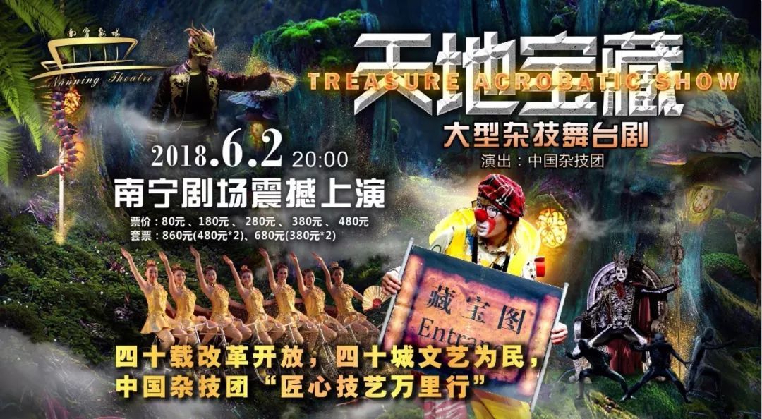 《天地宝藏》是中国杂技团建团六十周年推出的献礼晚会,节目是以探寻宝藏为主题故事,以小丑角色为线索贯穿故事始末,杂技节目穿插在情节过程之中,成为寻宝者探险路上需要闯过的一个个艰难险阻。并以此寓意中国杂技团“顽强拼搏、永攀高峰”的宝贵精神。