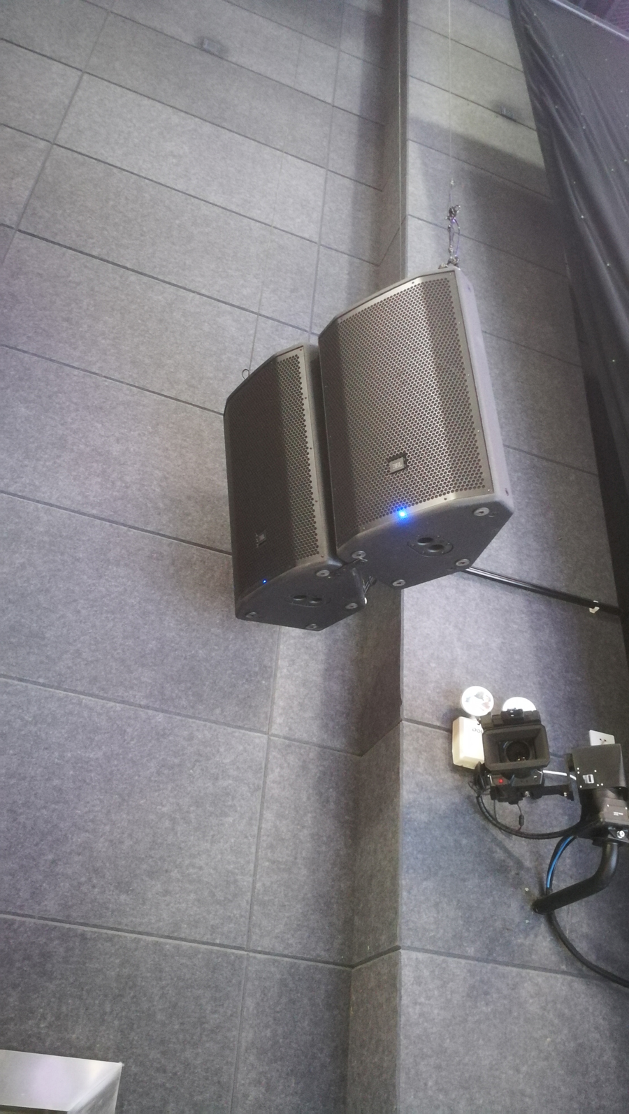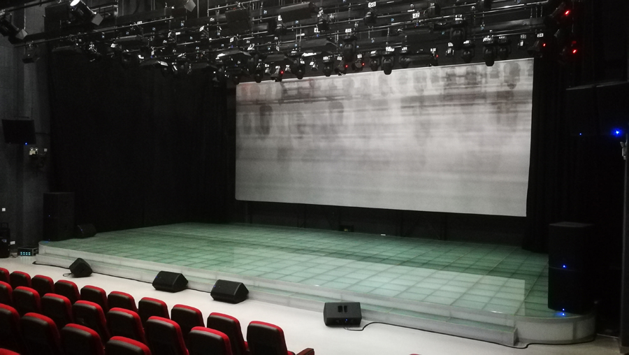 川师大综合实验楼小剧场舞台上的主扩声系统由美国JBL PRX800系列中的PRX815W有源15寸两分频以及PRX818XLFW有源18寸超低频担任,PRX 812W有源12寸两分频作为舞台监听以及前补音。PRX800全系列产品都拥有1500W高输出动力,并且内置D类功放,结合JBL专利技术,能够实现最高的效能,还能实现WiFi无线控制,操控自如,方便学校师生的使用。除此之外还有美国PHONIC ACUMEN8A有源监听音箱等。