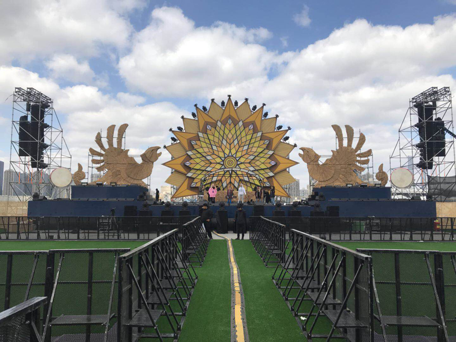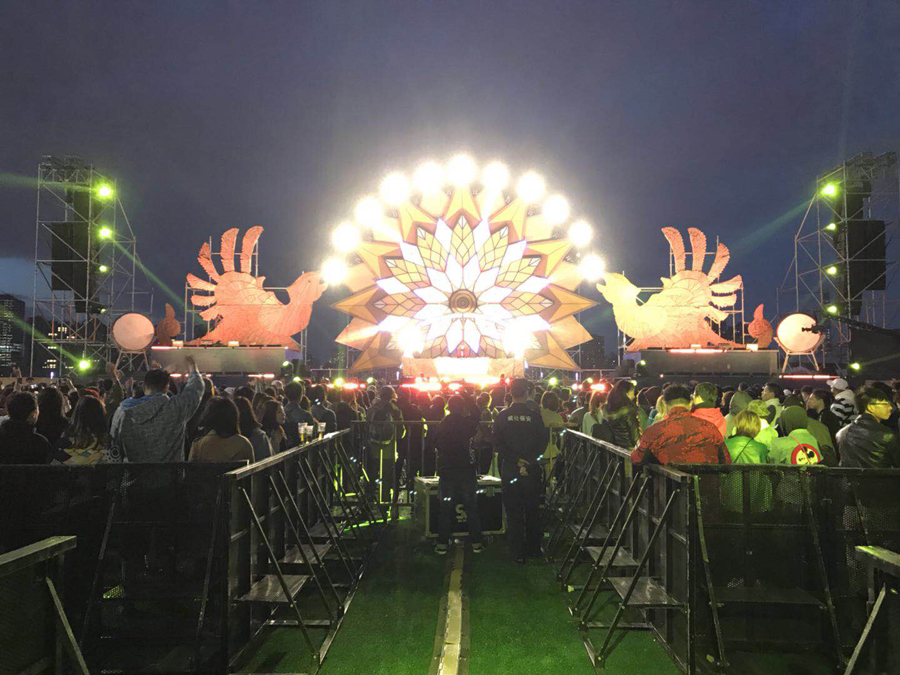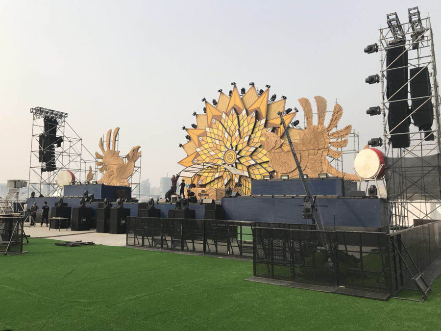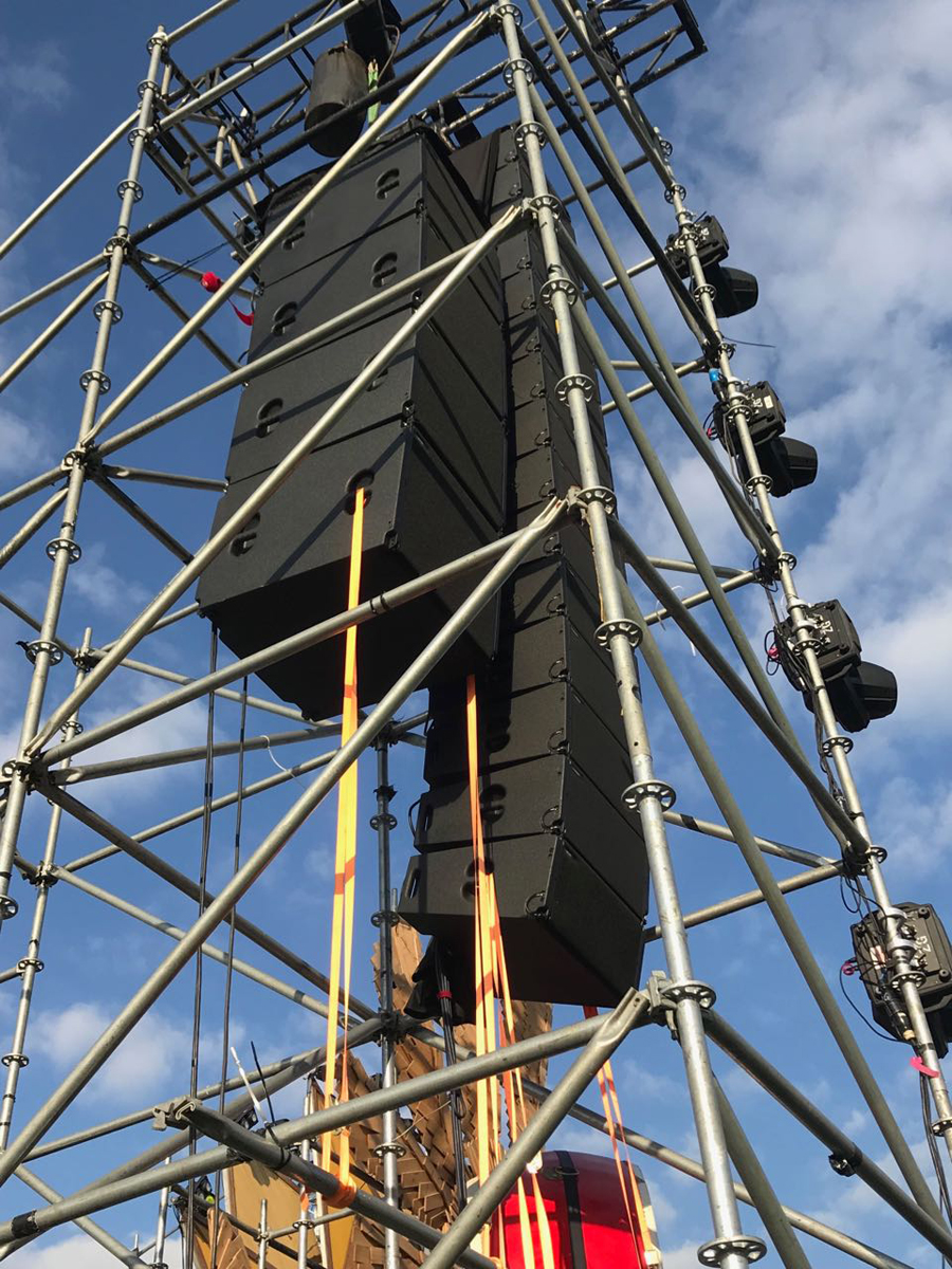 2017科罗娜日落声起音乐节——上海站,音响系统大升级,为满足成千上万的观众一起感受日落声起音乐节的魅力,主办方在音响系统上选择了更多的德国 TWAUDiO扬声器。其中包括在舞台两侧左右各吊挂着15只Vera36+4只S33担任主扩,4只Vera 36担任前补声、一共使用12只双21寸超低音BSX以及4只Vera 10 作为外补音,当然还有与之配套的K3DSP数字功放。
