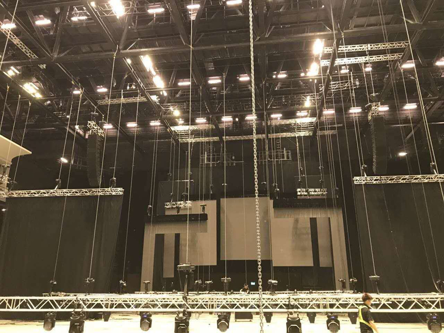 此次音乐盛会总共使用了24只Vera36和16只Vera10垂直线阵列扬声器,16只S33心形指向性超低, 4只BSX超低音箱,16只M15多功能返送扬声器,整个系统由32台K3DSP功放推动。