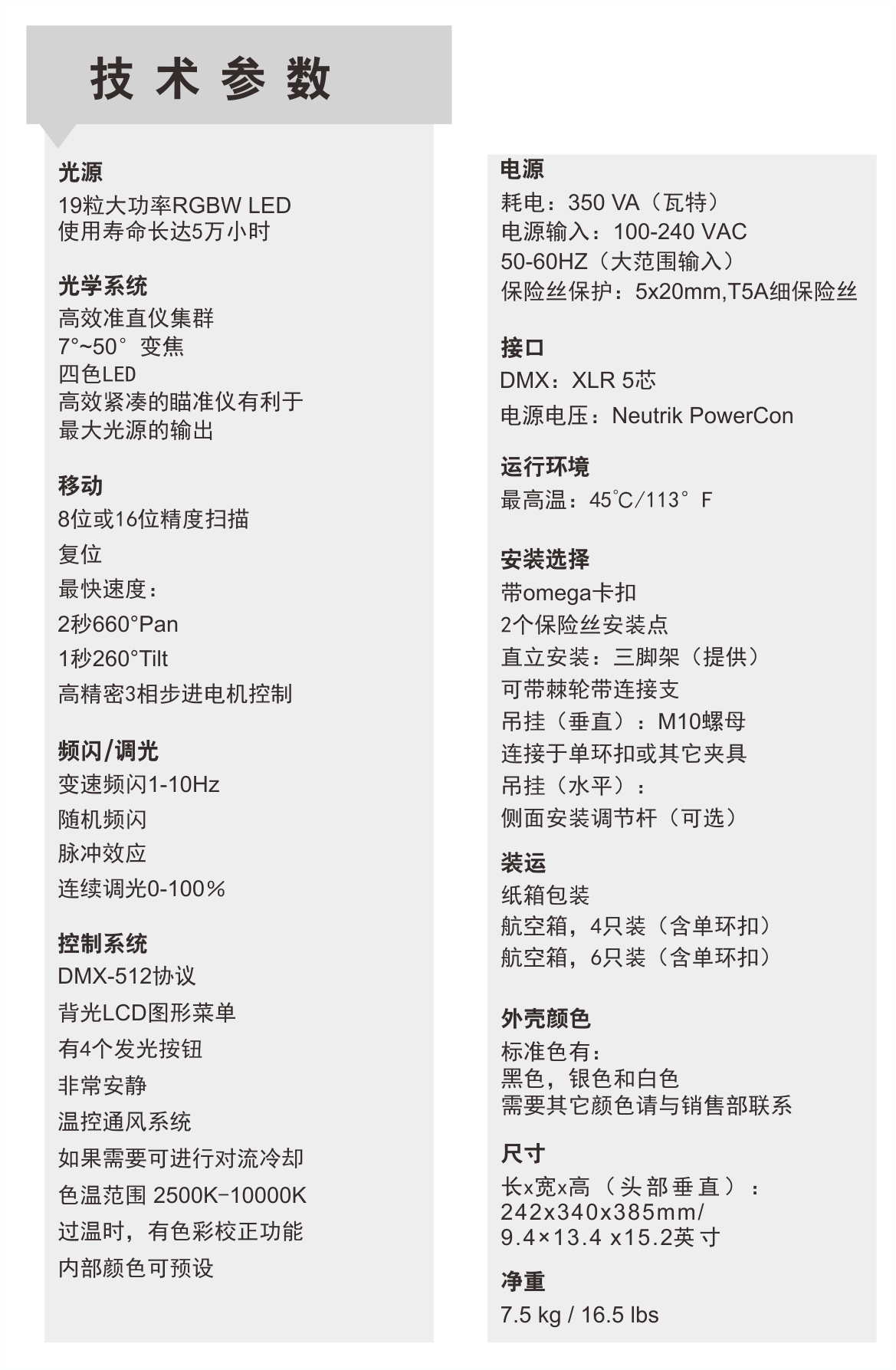 可无底座设计固定以及小的封装。新的光学系统提供边界清晰的光束,连同轮廓鲜明的边线,低变焦范围同时保持绝对同质和软边广角。