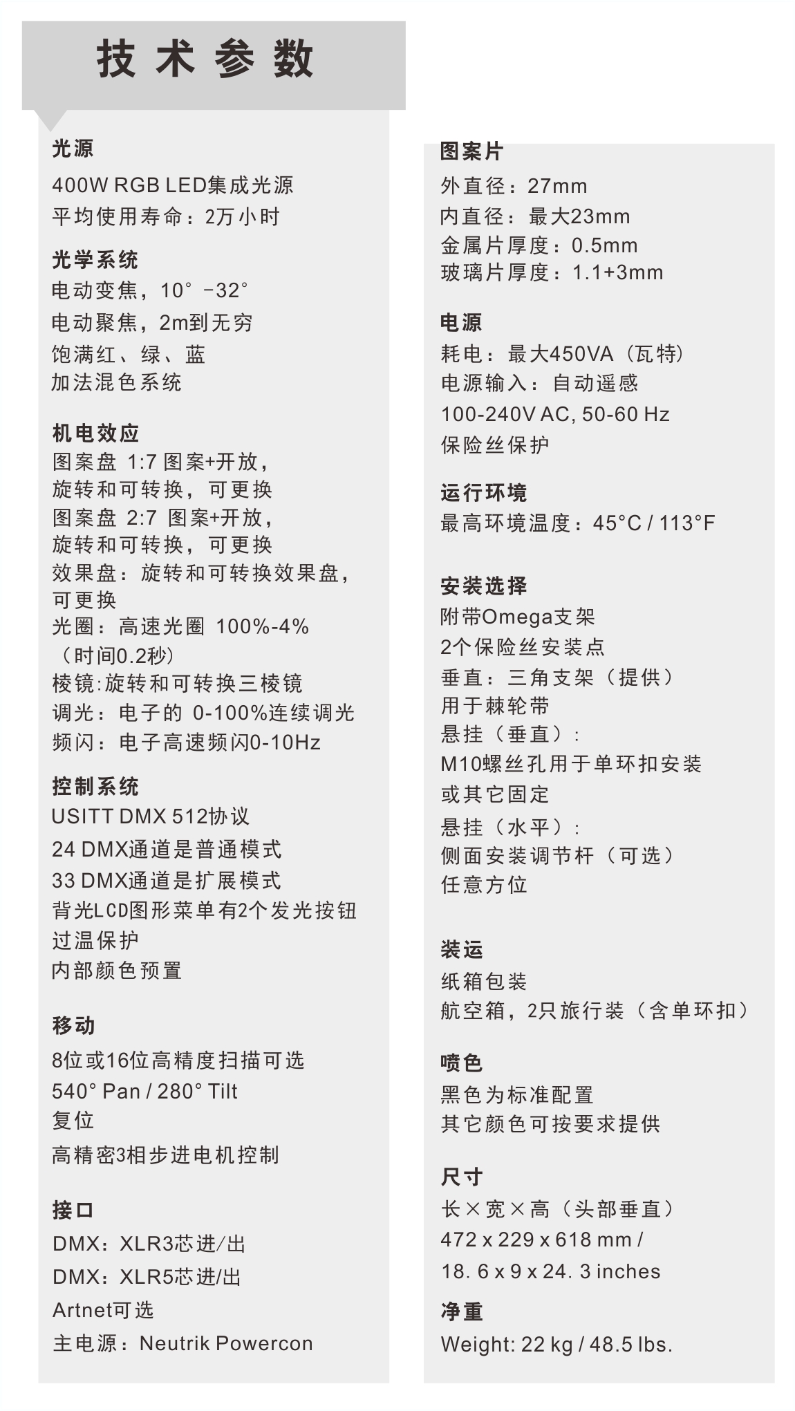 装配以及运输的重量,且灯具操作起