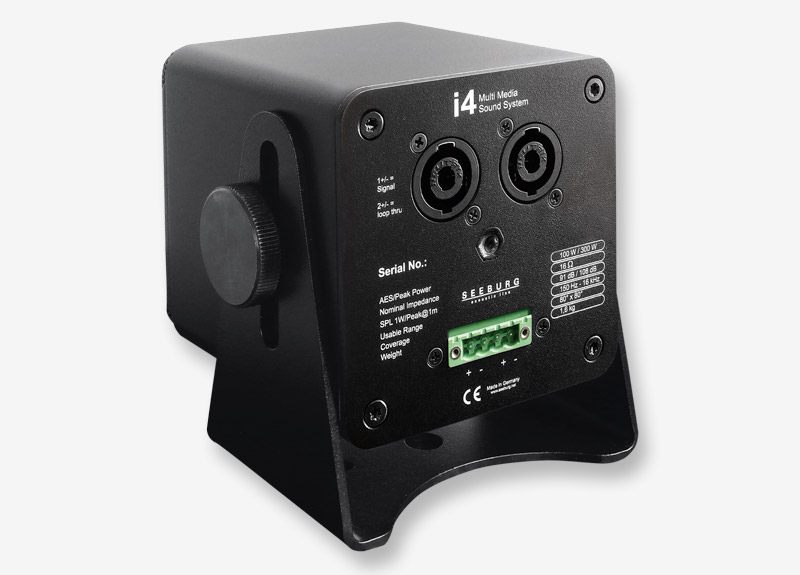 i4是一款袖珍型专业扬声器,适用于要求优质声音系统和低调安装风格的场所。能量十足的4"宽频锥形驱动器最大声压级可达113dB (1W/1m),毫不失真。 技术参数 单元类型 4″宽频单元 系统类型 多媒体声音系统 功率(AES/PEAK) 100W/300 W 阻抗 16 Ω 灵敏度(1W) 91dB 最大声压级(Peak@1m) 113dB 频率响应(-6dB) 150Hz - 16kHz 吊挂点 3×M10/1×M6 覆盖角度(水平/垂直) 80°×80°锥形 连接 2×Neutrik Speakon 4-pole Coding:1+/-HiMid,2+/- loop thru 1×Phoneix 尺寸(高×宽×深) 10.3×10.3×11.6 cm 重量 1.6kg Order No. 00150/black 00150/white