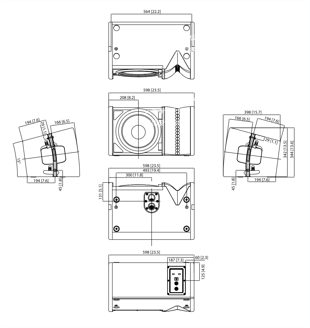 ● 18 mm (3/4")胶合板箱体外壳,耐磨半哑光漆面喷涂